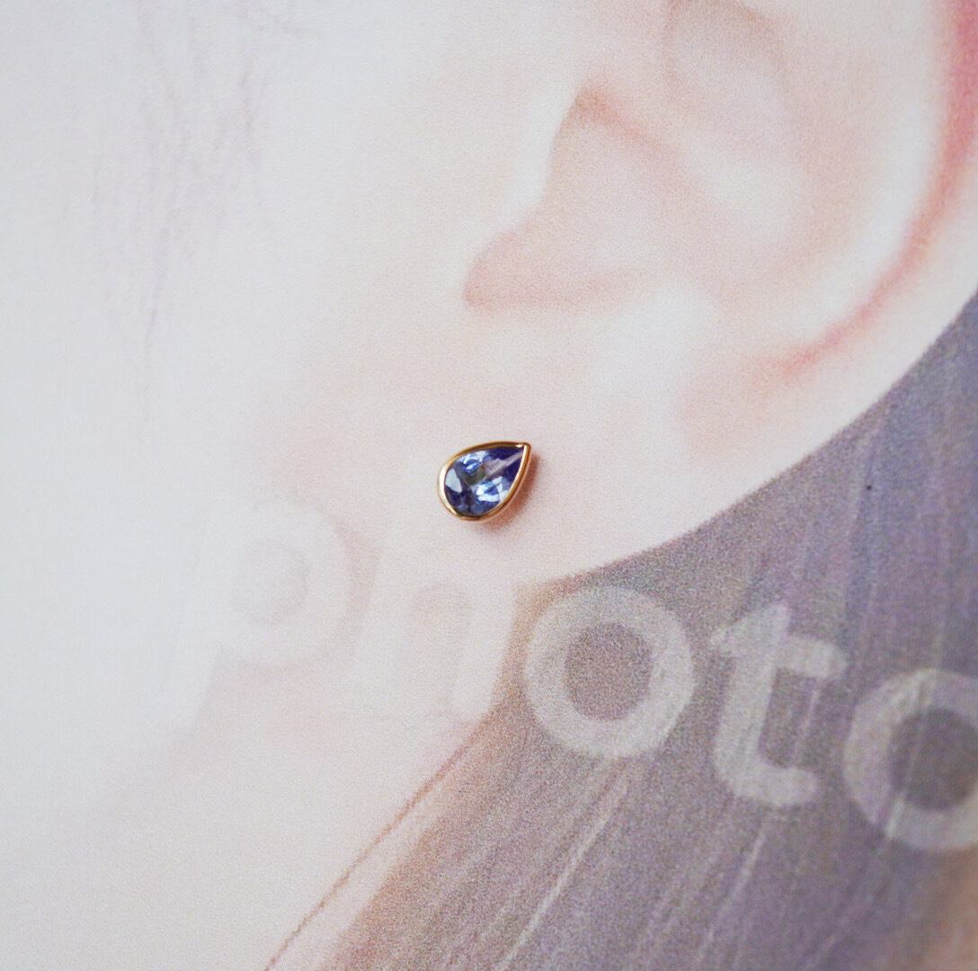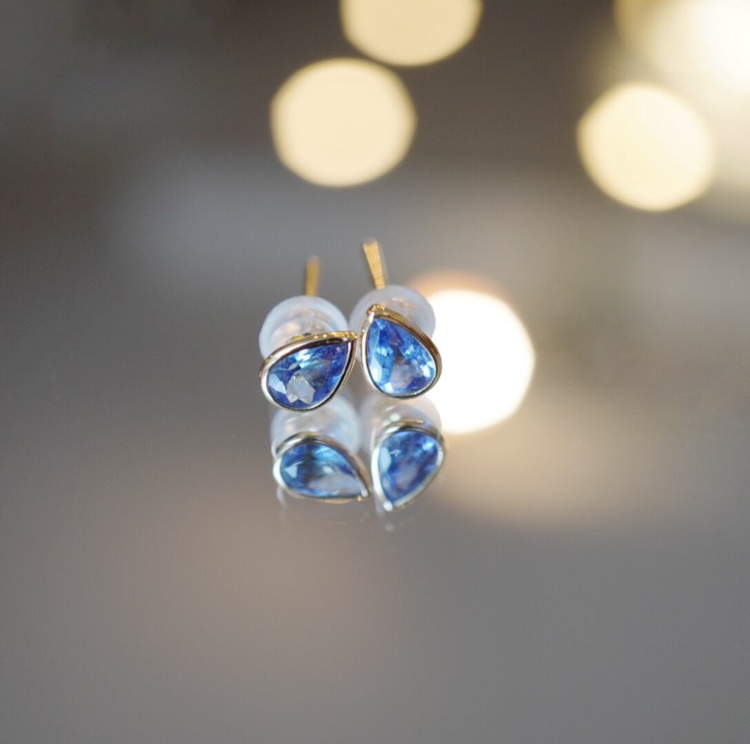宝石の都市インド、ジャイプールの職人がそのブルーの色味を活かし、18kの地金で雫型の美しいピアスに仕立てました