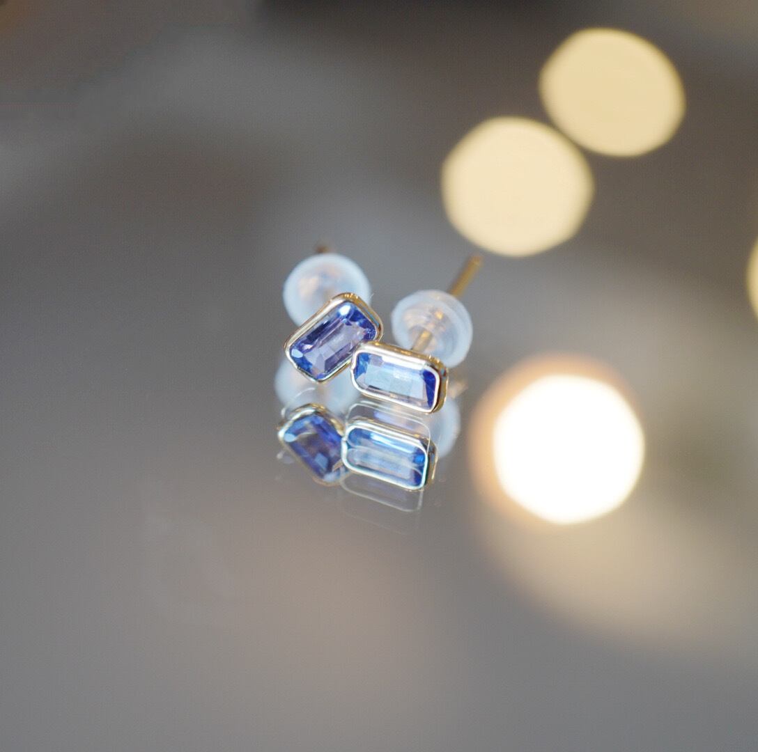 宝石の都市インド、ジャイプールの職人がそのブルーの色味を活かし、18kの地金でスクエア型の美しいピアスに仕立てました