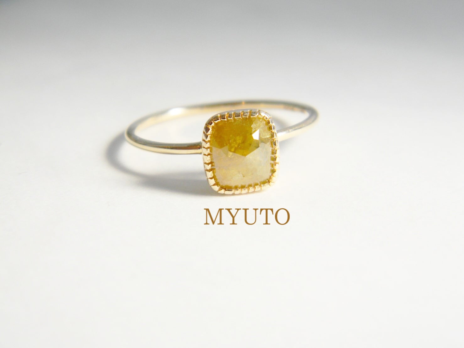度重なる奇跡により、長い旅を経てようやく地表に現れた自然の姿のダイヤモンドを、その大地の色の美しさをそのまま活かして、宝石の都市インド、ジャイプールの職人がローズカットを施し10kの地金で上品なリングに仕上げました。