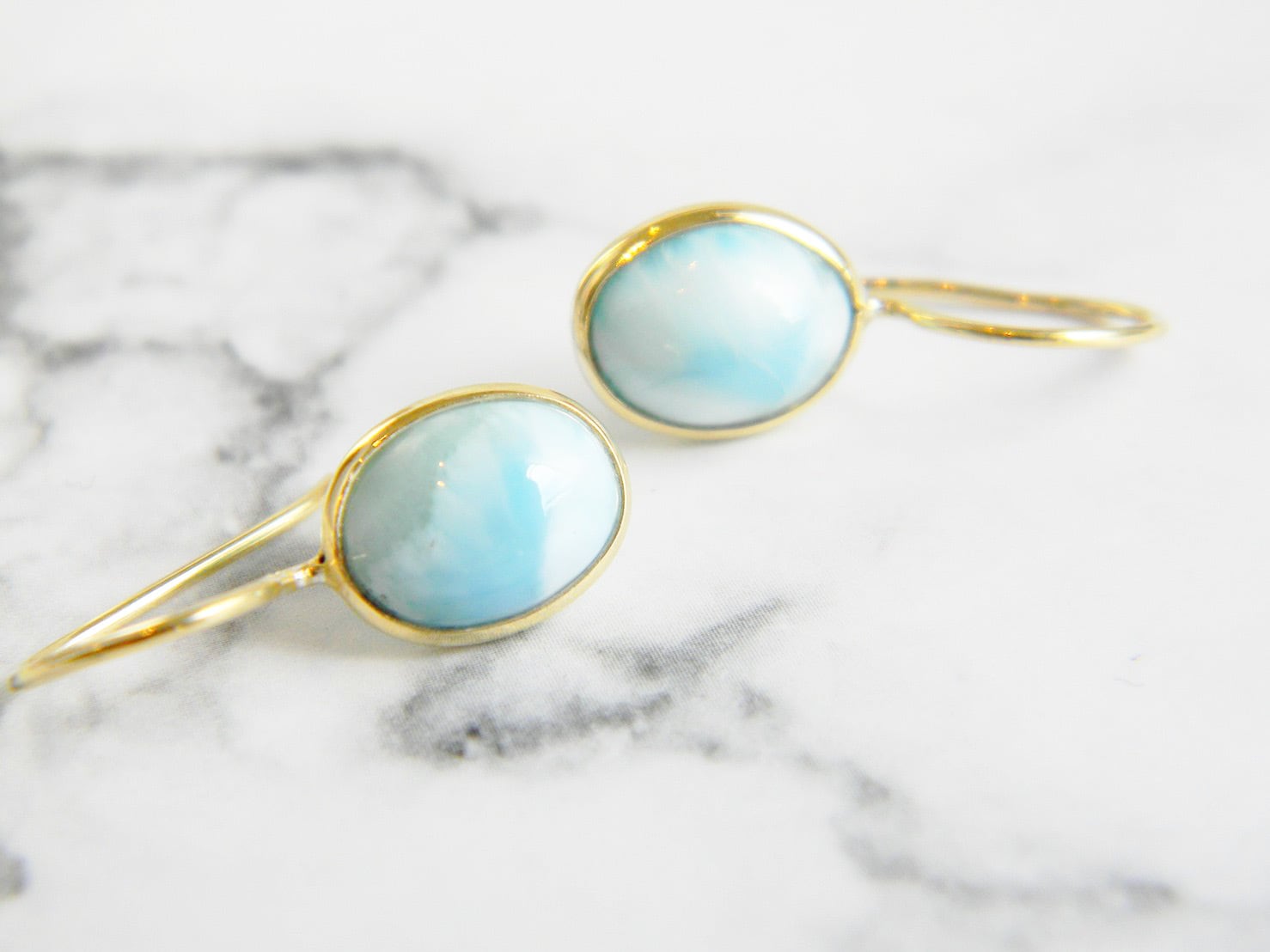 ラリマーは粘り気が強い石で、研磨には高度な技術が必要ですが、宝石の都市インド、ジャイプールで職人がその美しい模様を最大限に活かしたピアスを作り上げました。