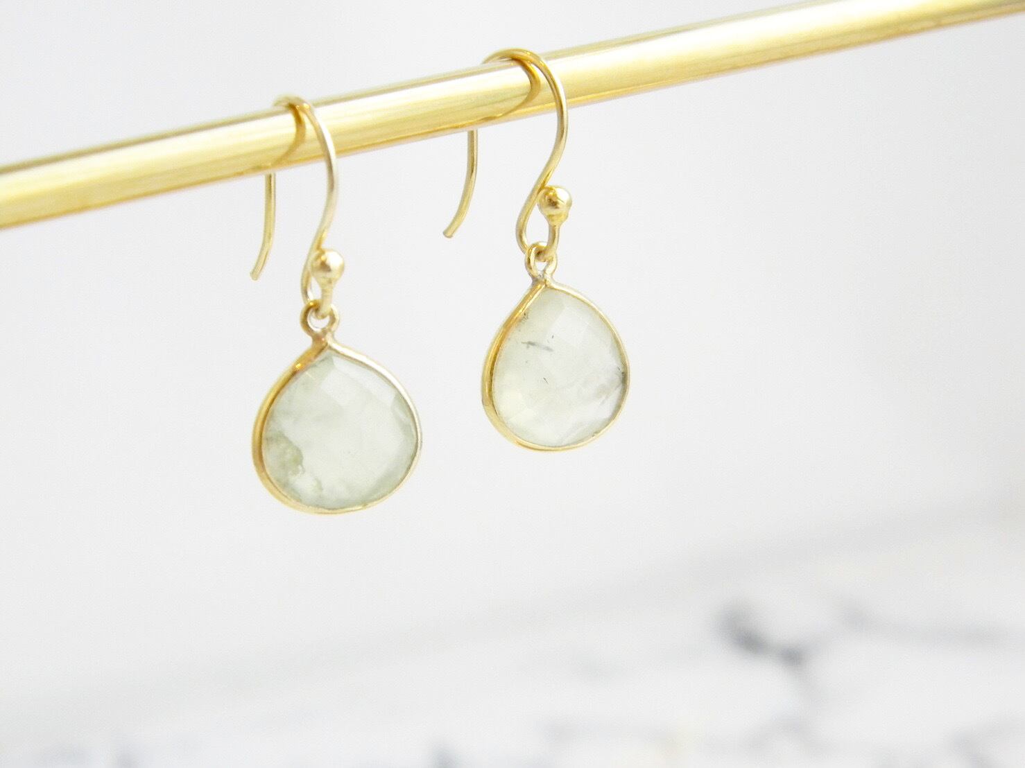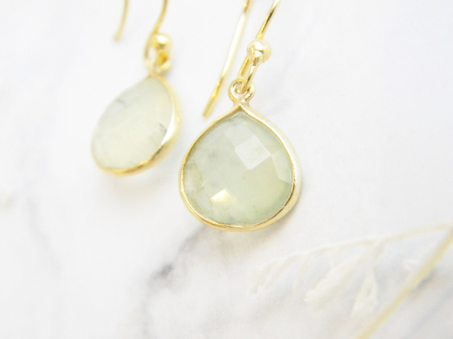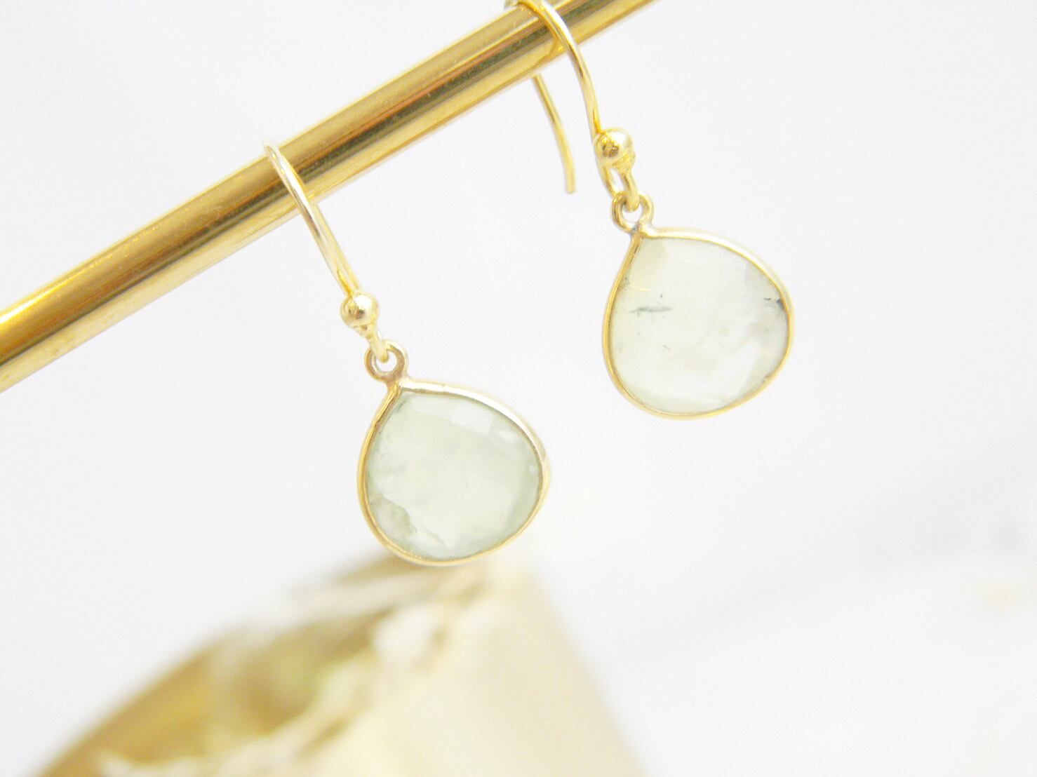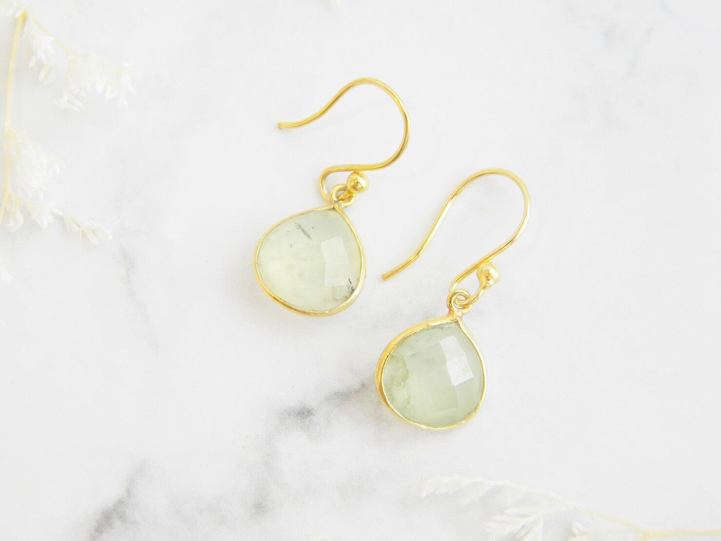 ぶどうの房のような形状で発掘されることから、その名を「ぶどう石」と呼ばれるプレナイト。宝石の都市インド、ジャイプールの職人が石の輝きが増すよう、細かいカットを施し、マスカットのような瑞々しい色の美しさが映えるピアスを作り上げました。