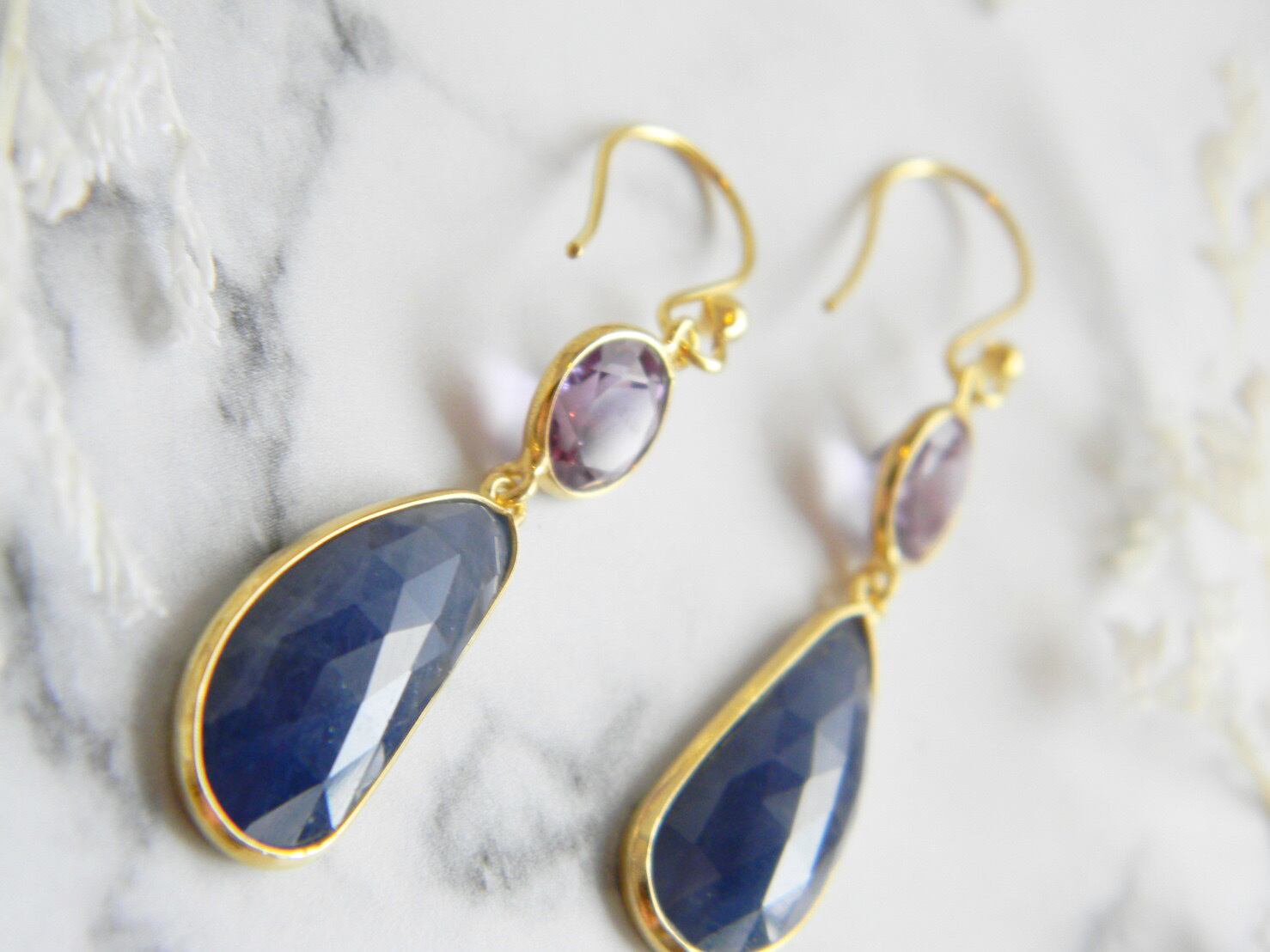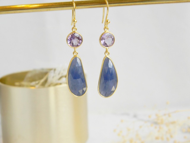 【イヤリング変更可能】アメシスト&サファイアピアス
