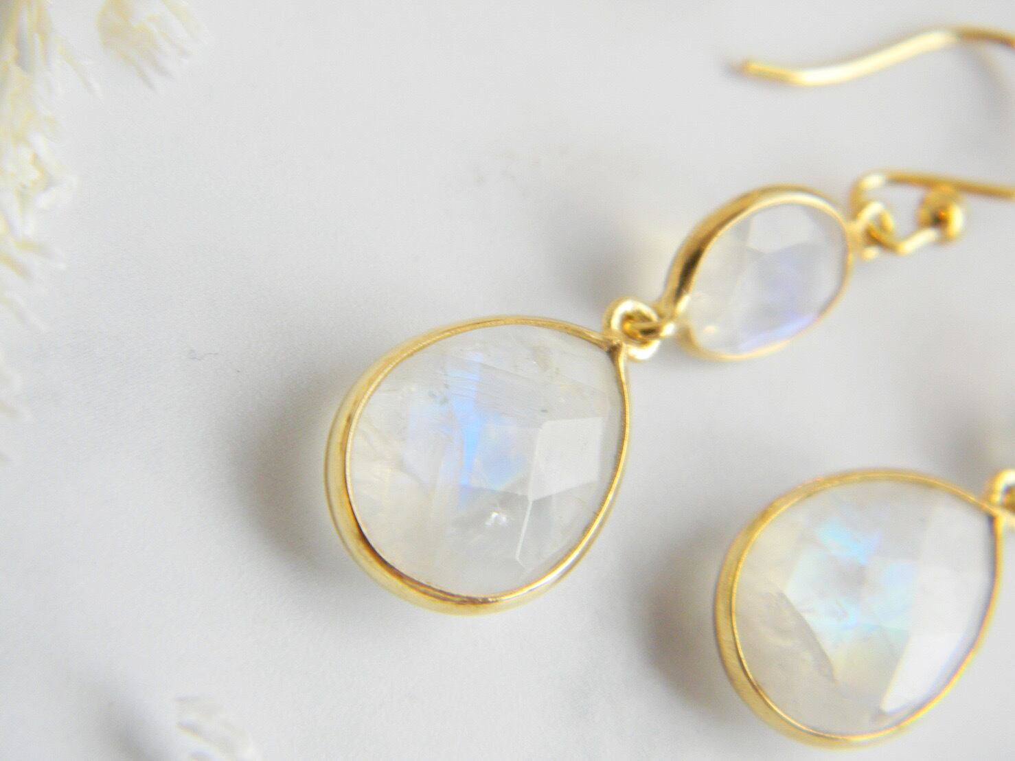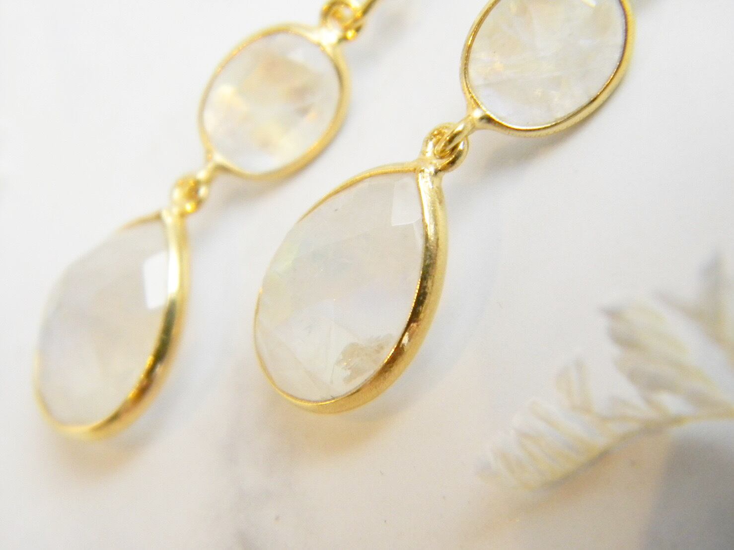 【イヤリング変更可能】ブルームーンストーン2連ピアス