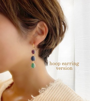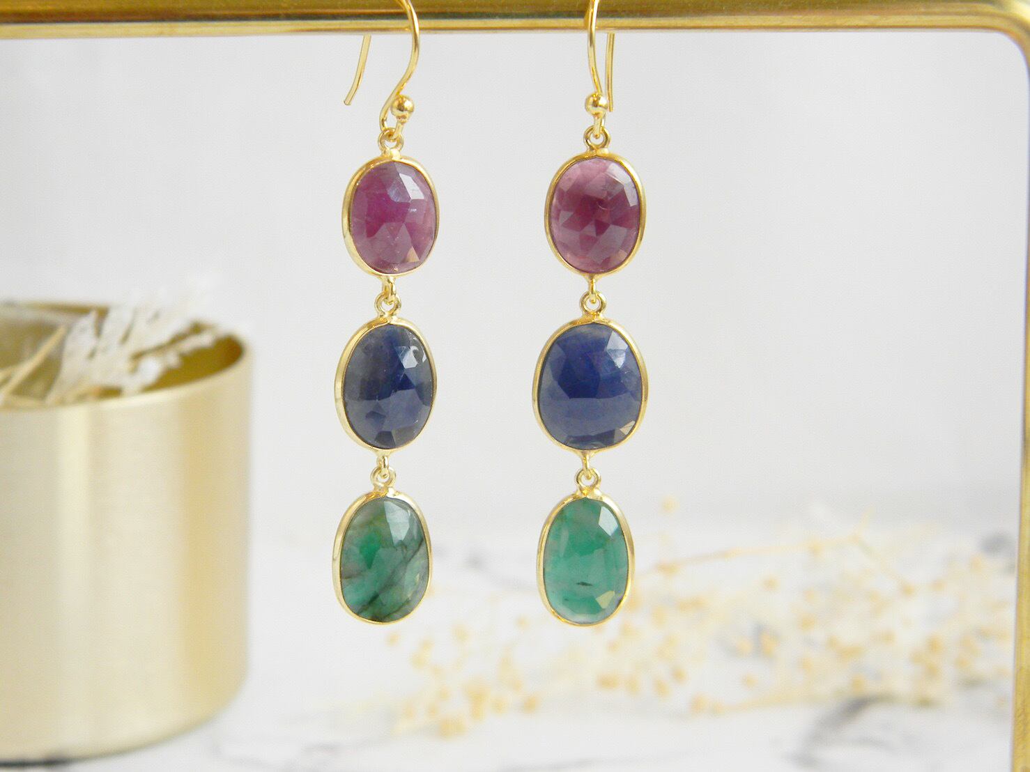 【イヤリング変更可能】ルビー&サファイア&エメラルド3連ピアス