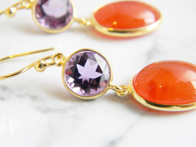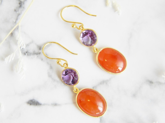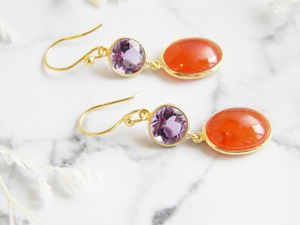 【イヤリング変更可能】アメシスト&カーネリアンピアス