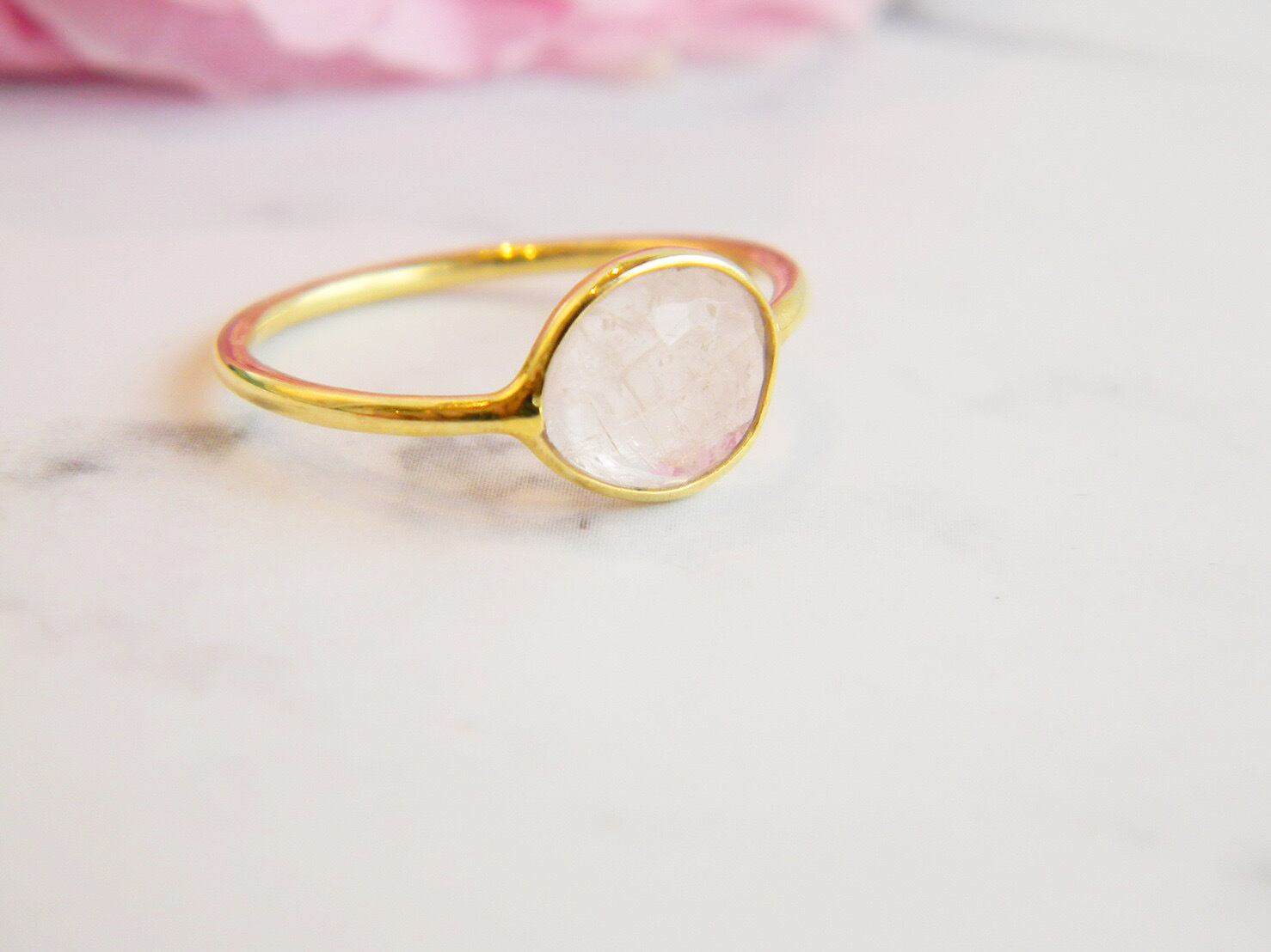 宝石の都市インド、ジャイプールの職人がその柔らかな色と輝きが引き立つよう、シンプルな覆輪留めのリングに仕上げました。