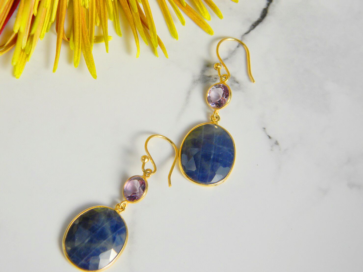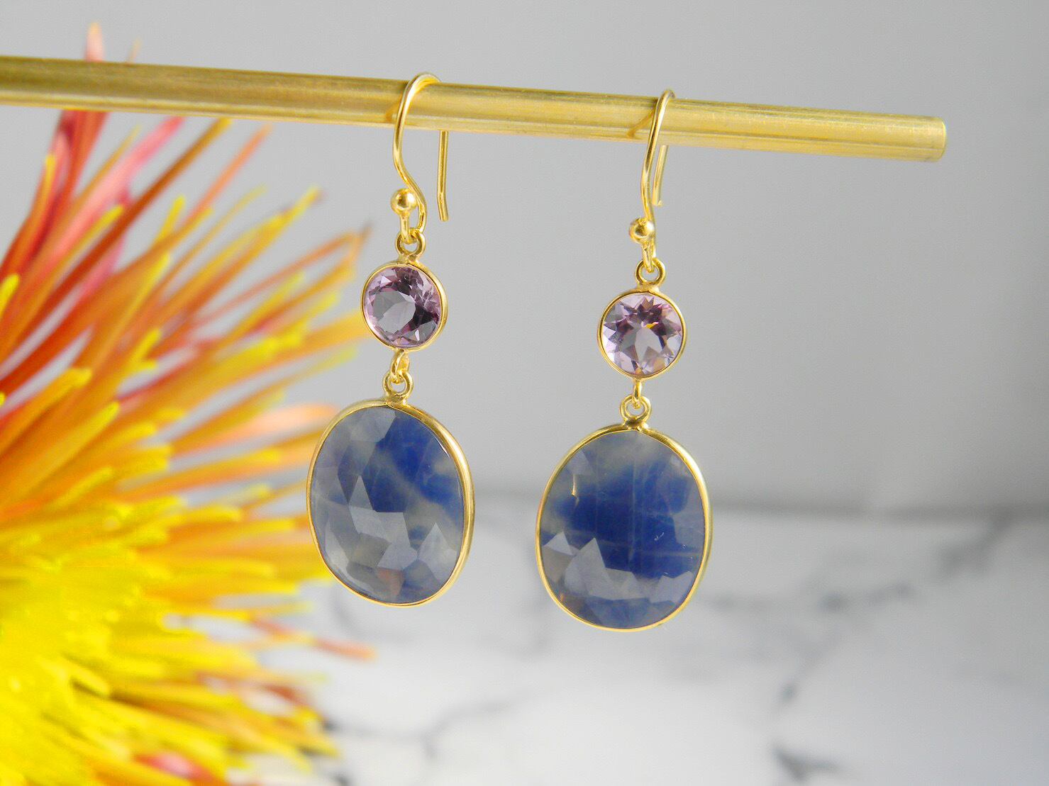 【イヤリング変更可能】アメシスト&サファイアピアス