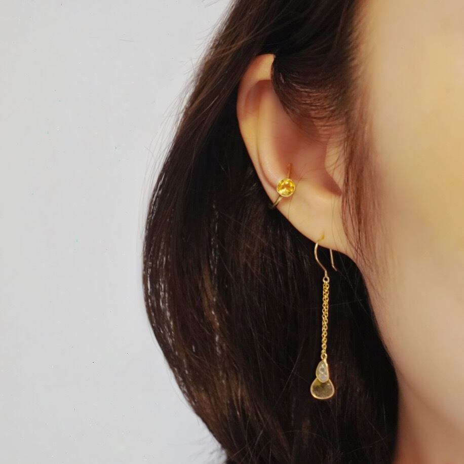 インド、ジャイプールの職人が蜂蜜のような鮮やかなイエローの石を美しいイヤーカフに仕立てました。