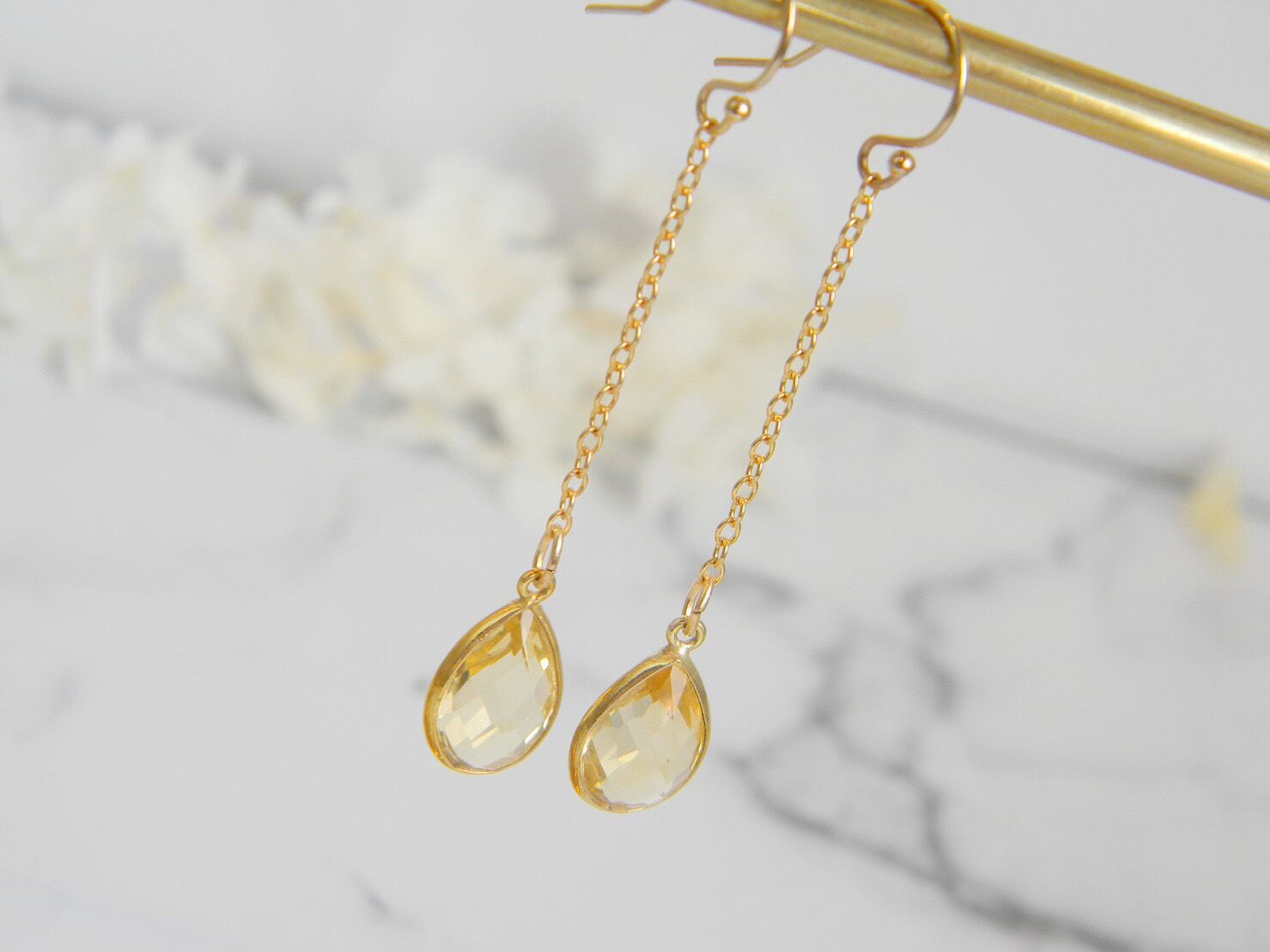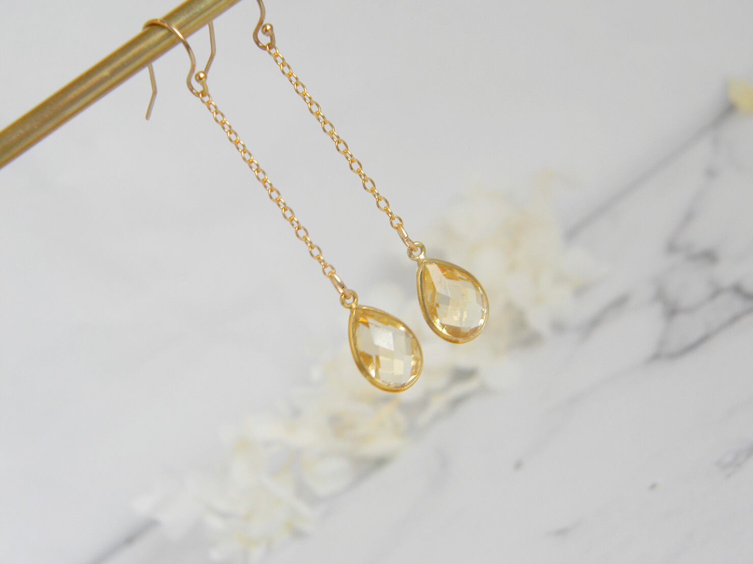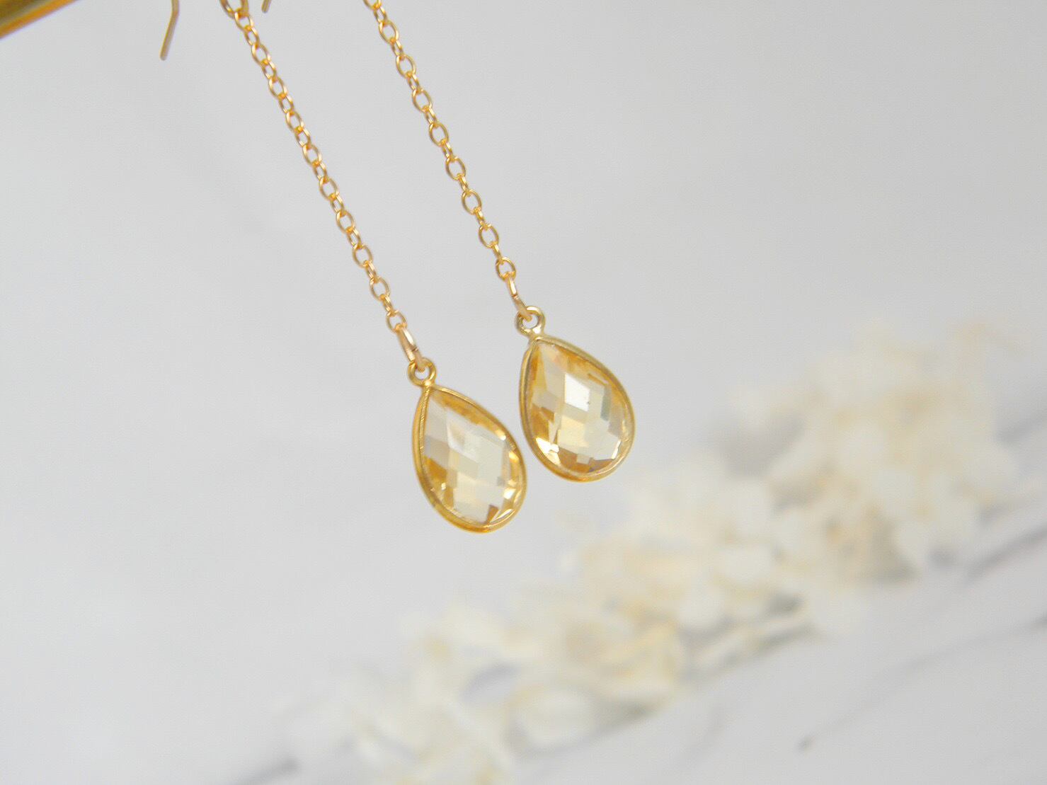 インド、ジャイプールの職人が蜂蜜のような柔らかな色味の石にカットを施し、美しいピアスに仕立てました。
