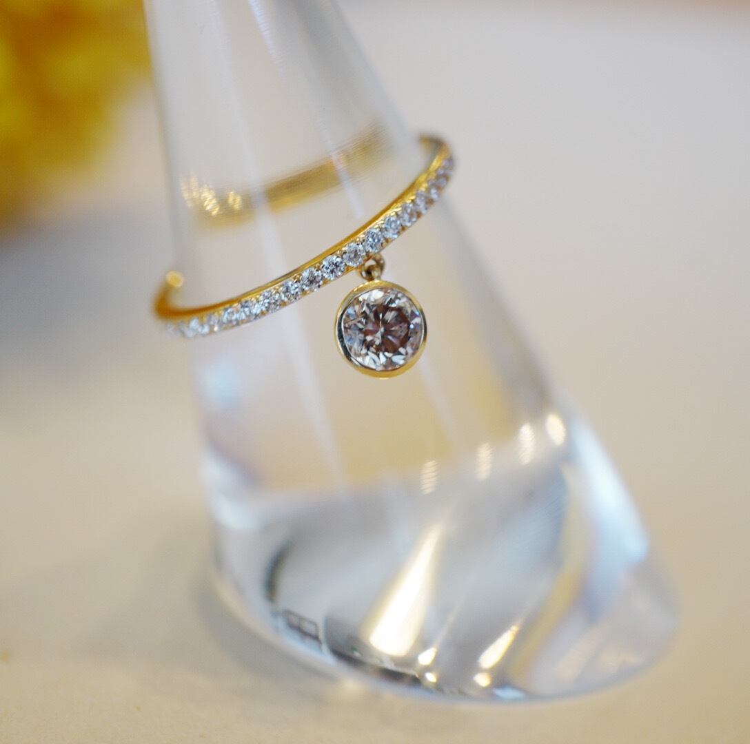 【13号】18k揺れるブラウンダイヤモンドハーフエタニティリング