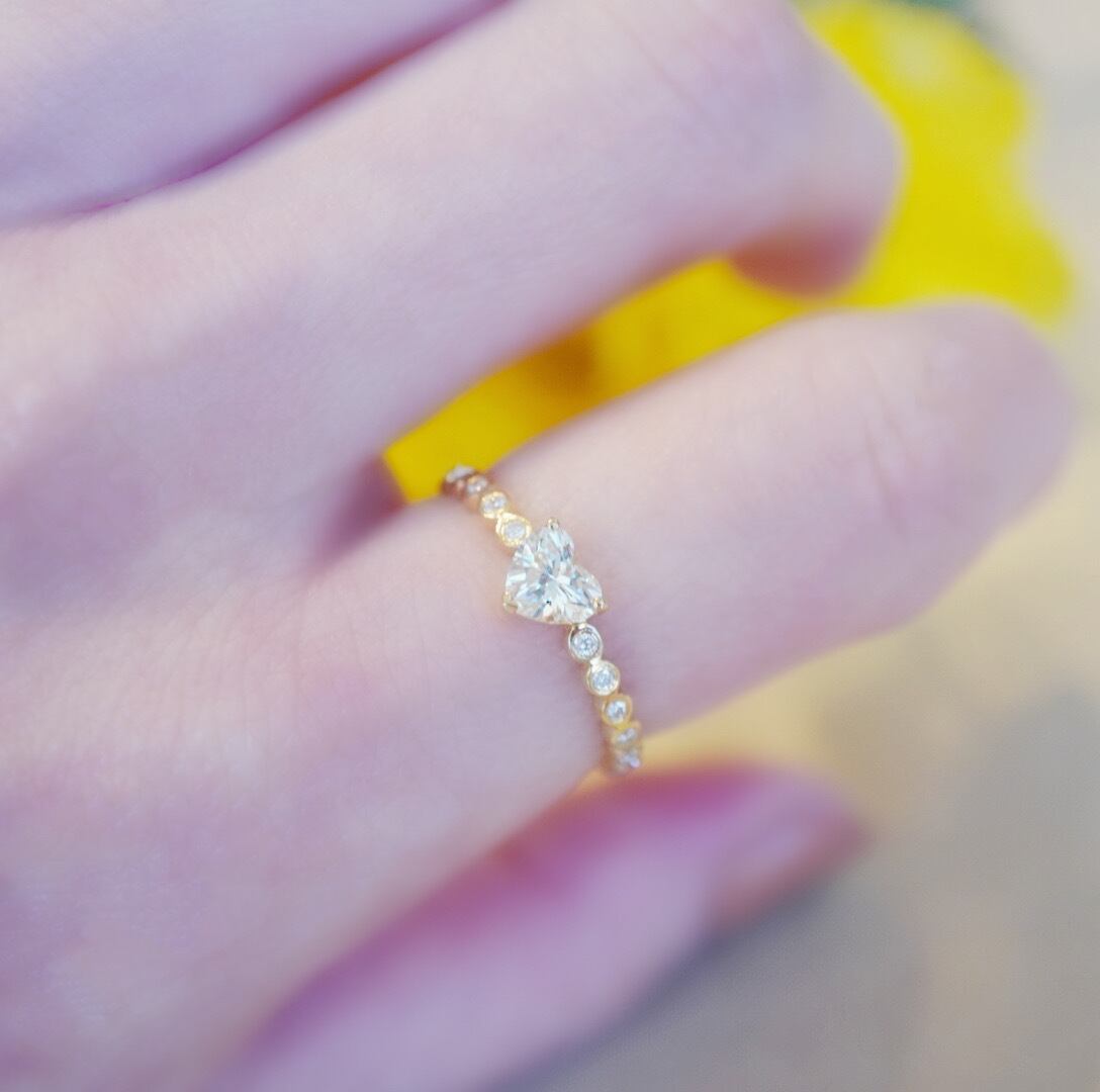 度重なる奇跡により、長い旅を経てようやく地表に現れた自然の姿のダイヤモンドを、そ美しさをそのまま活かして、宝石の都市インド、ジャイプールの職人が18kの地金でハートシェイプのフルエタニティリングに仕立てました。