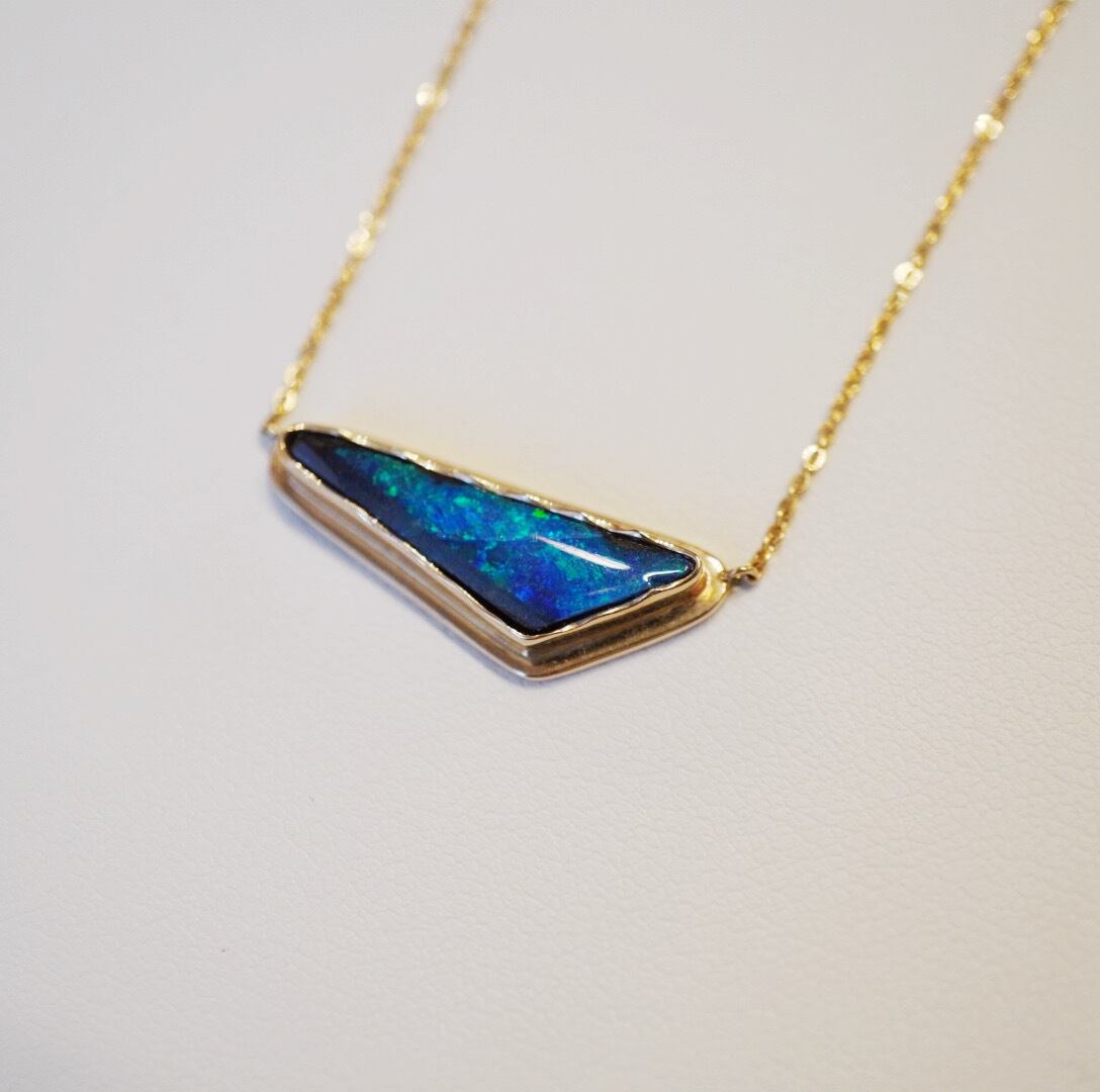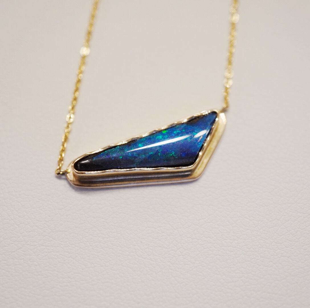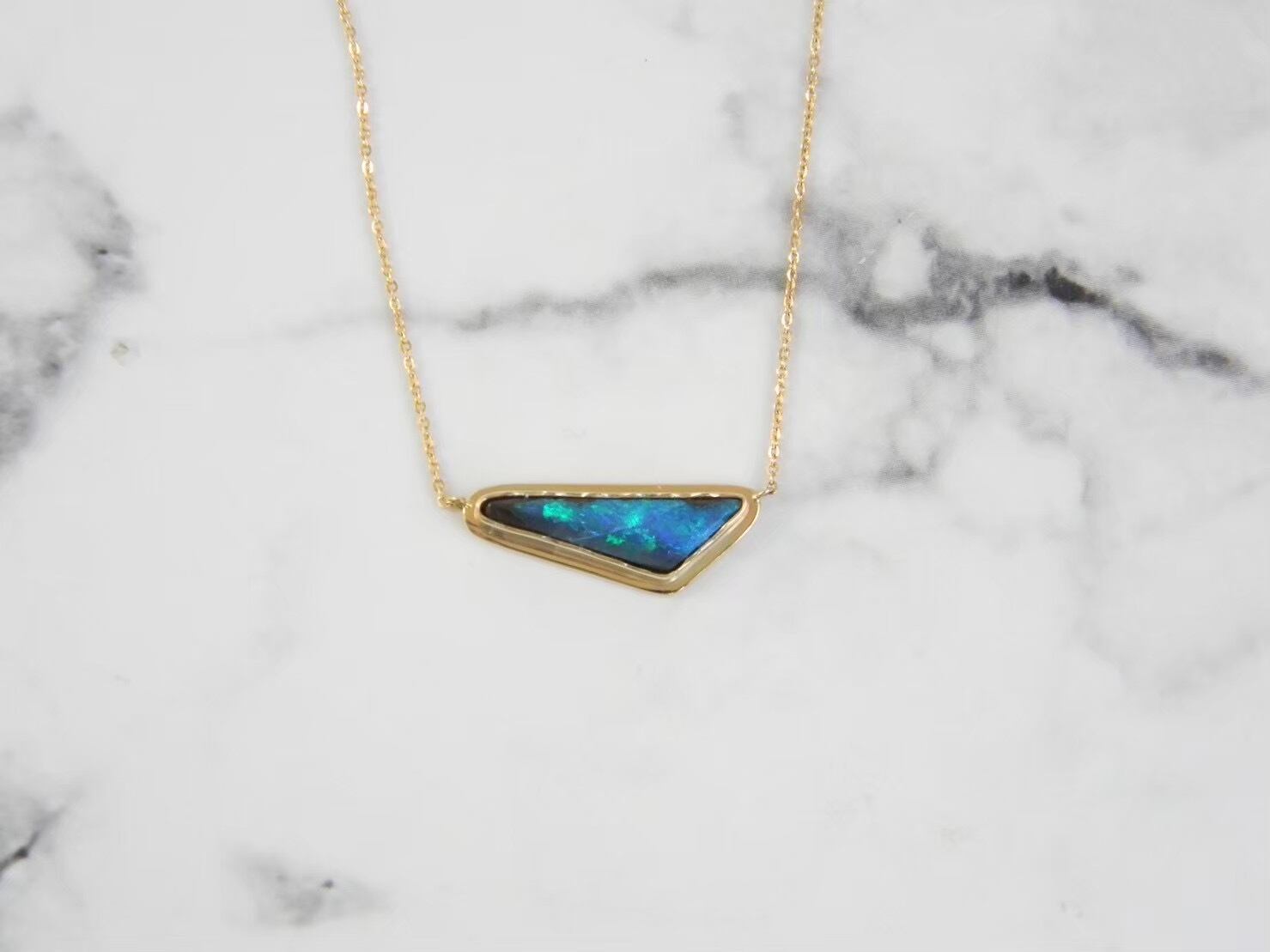 他にはないその豊かな表情と遊色の美しさを活かしてインドジャイプールの職人が10kの地金で唯一無二のネックレスを仕立てました。
